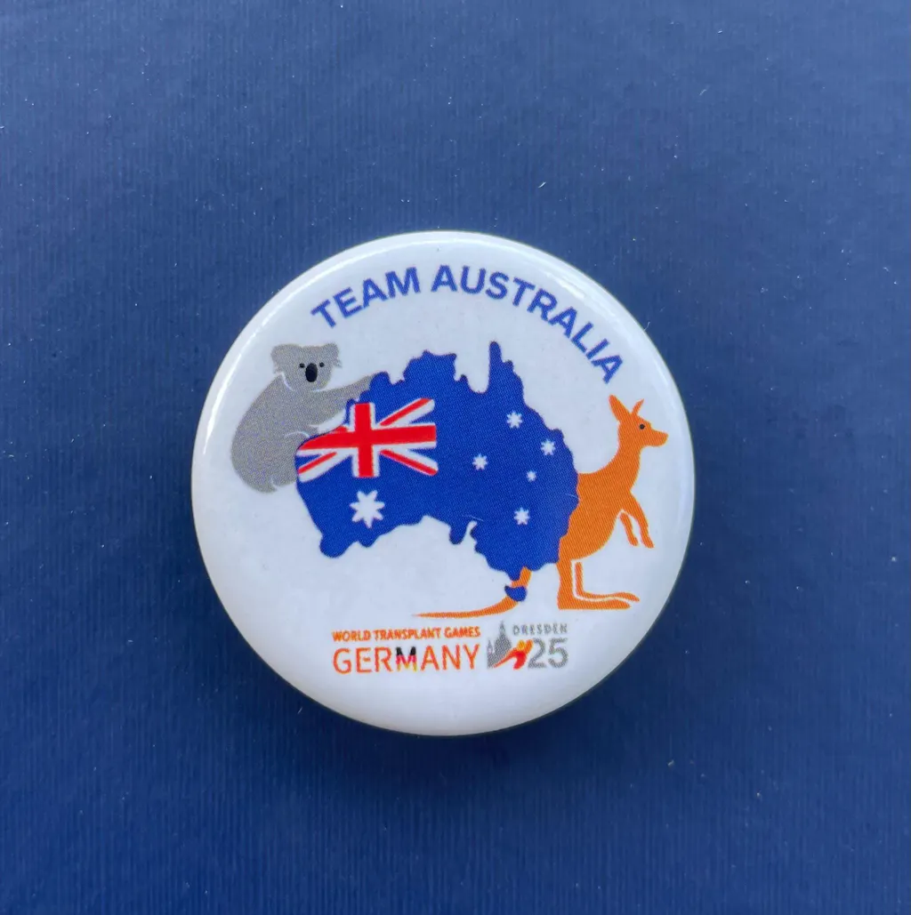 Patrick Australia was requested at relatively short notice to produce 1500 buttons for the Australian Team competing in the World Transplant Games in Dresden, Germany in August 2025. John assisted with final colour enhancements and produced and delivered the buttons in less than two weeks. The buttons were perfect. Team Members were delighted with the result and we traded them with competitors from over 50 other countries, receiving accolades for the quality of the Team Australia buttons. Thank you John for a great outcome.